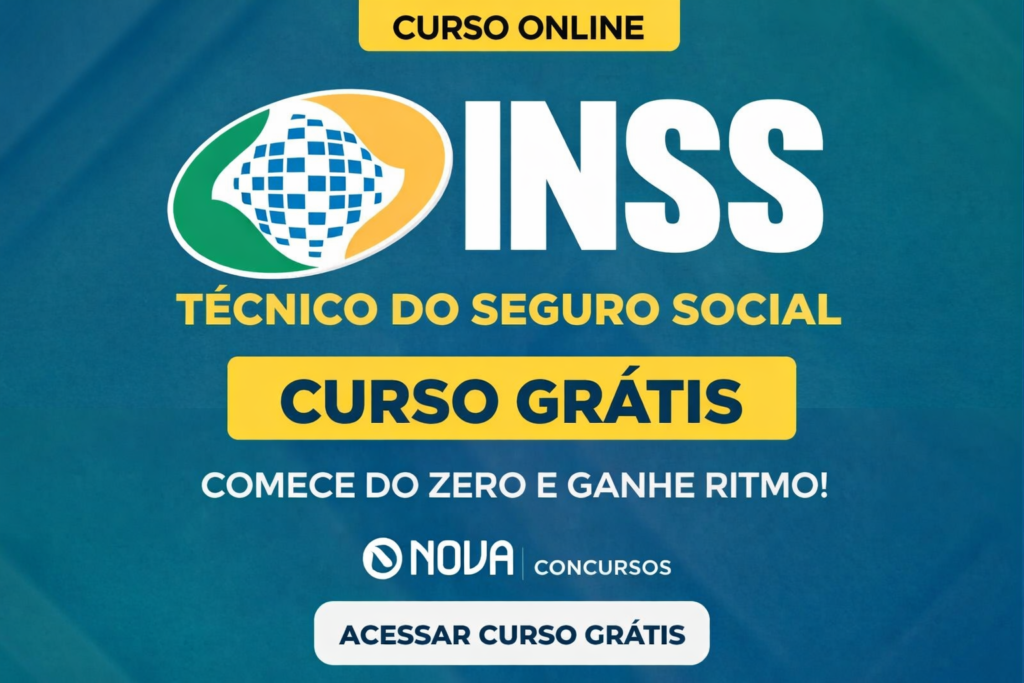 A Nova Concursos liberou um Curso Grátis para INSS – Técnico do Seguro Social, ideal para quem quer dar o primeiro passo na preparação, conhecer a metodologia da plataforma e montar uma base sólida para evoluir rumo à aprovação.